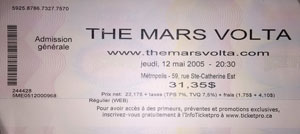 Fresh out of college and the summer of 2005 was already off to an amazing start with concerts. I was lucky enough to have Queens of the Stone Age kick things off in March. Following it up was my first Nine Inch Nails show at the Kool Haus in Toronto on May 9th, just a few short days prior to my very first Montréal gig; The Mars Volta! There was a group of about four or five of us that made the trek into the city on a Thursday night. None of us had seen them before, so we were all pretty excited to finally have the opportunity to catch one of their live shows.