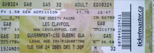 My first show of 2009 was a big one. The Oddity Faire: A Mutated Mini Fest Tour was out making its rounds and there was no way that I could miss the stellar lineup! It consisted of Les Claypool, out performing some of his latest solo work, and one of my personal favourite hip hop artists, Saul Williams, as a supporting act, incredible. To round things out and to help get the night going were Secret Chiefs 3, which I was surprised to find out were past members of Mr. Bungle and Faith No More. They simply sealed the deal. You couldn't ask for a more diverse bill of pure talent! It didn't matter that the show was on a Tuesday night in Toronto and that we would have to take a couple of days off of work to make our way down to it; it was worth it! The group of us embarked on the all-too-familiar four hour journey into Ontario's capital.